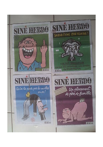 4 périodiques satiriques à l'humour très bête et méchant dans la veine de Charlie Hebdo; créés par un ancien membre' historique' de Charlie Hebdo le vieil anarchiste Siné récemment décédé tous en bon ou très bon état avec des signatures comme Denis Robert Michel Onfray Gudule Berroyer Didier Porte Noel Godin. voir beaucoup d'ouvrages dans ma boutique d'autres lots