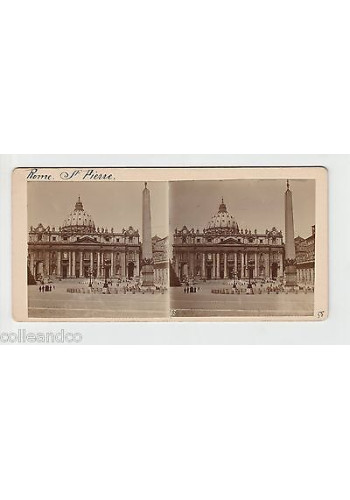 Ancien carton stéréoscopique vers 1910 celui-ci à la particularité de comporter 2 clichés / photos collées sur le RECTO ET VERSO :. - Recto : Rome le pont des A nges avec une voiture à vin + le château. - Verso : Rome basilique Saint-Pierre