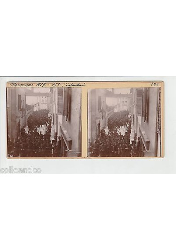 Ancien carton stéréoscopique de 1909 celui-ci à la particularité de comporter 2 clichés / photos collées sur le RECTO ET VERSO :. - Recto : Manoeuvres militaires : Le 153ème Régiment d'Infanterie. - Verso : Manoeuvres militaires : Le 153ème Régiment d'Infanterie (2nd photo)
